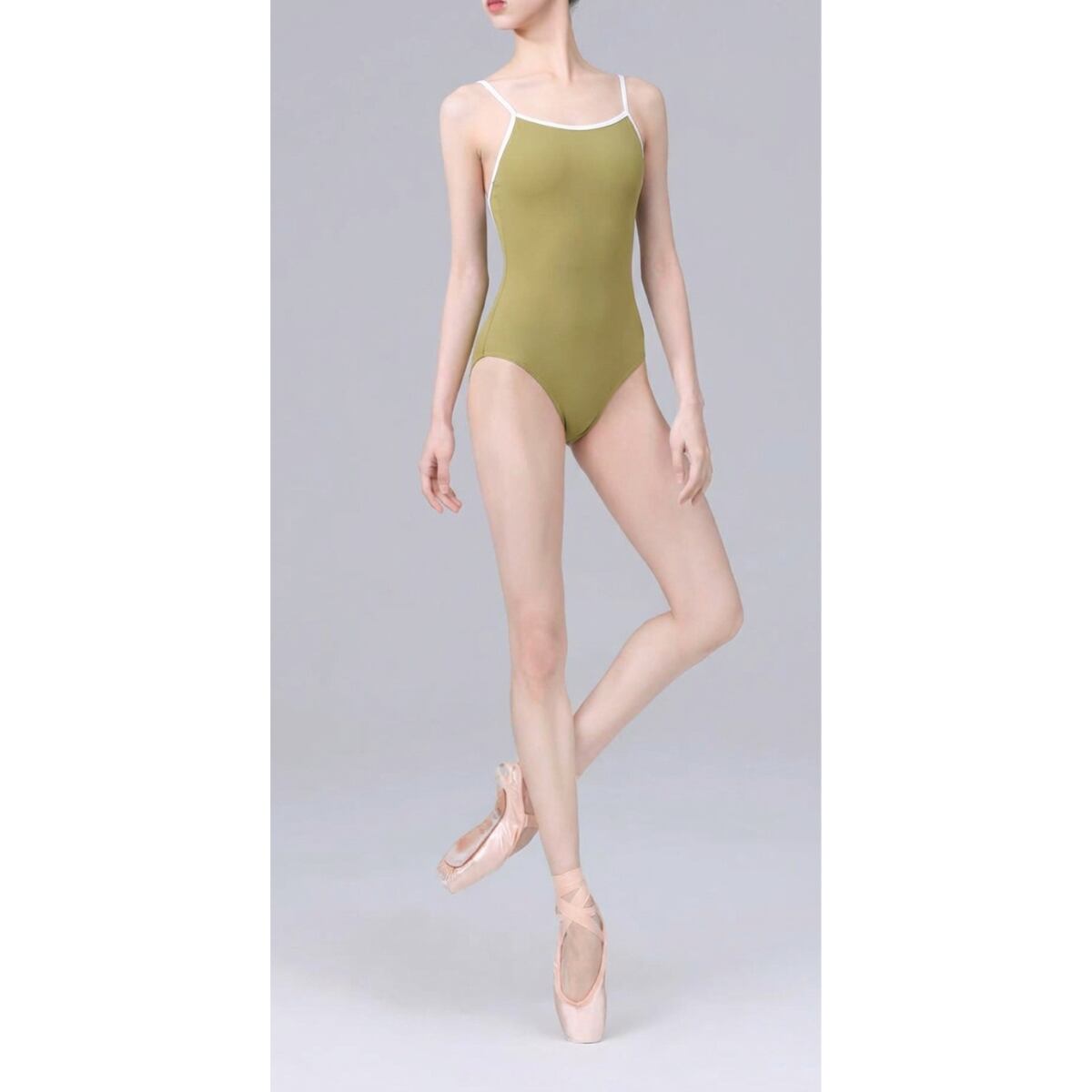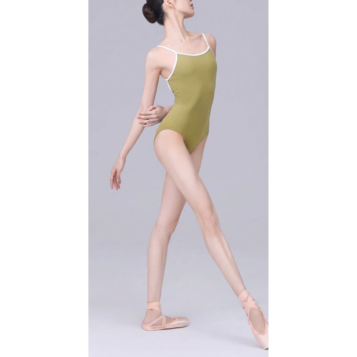 ◼️トリミングクロス キャミソールレオタード カーキグリーン S L1143