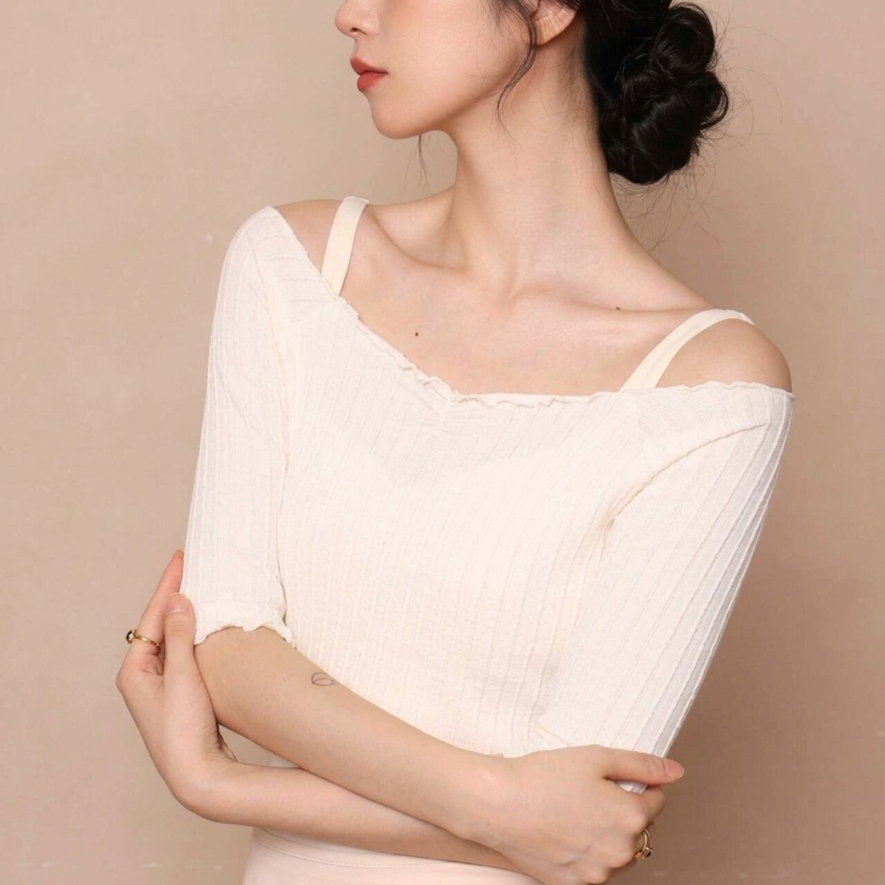 ◼️サイズ S:W60-68cm / B76-84cm / H80-88cm / 身長150-160cm / 体重40-50kg M:W64-72cm / B80-88cm / H84-92cm / 身長155-165cm / 体重45-55kg L:W68-76cm / B84-92cm / H88-96cm / 身長160-170cm / 体重50-60kg XL:W72-80cm / B88-96cm / H92-100cm / 身長165-175cm / 体重55-67.5kg ※1〜3cmの誤差があることがございます。ご了承くださいませ。 ◼️平置きサイズ S:フロント丈24.6cm / B38cm / 袖丈31.7cm M:フロント丈25.5cm / B40cm / 袖丈32.4cm L:フロント丈26.4cm / B42cm / 袖丈33.1cm XL:フロント丈27.4cm / B44cm / 袖丈33.8cm ※1〜3cmの誤差があることがございます。ご了承くださいませ。 ◼️カラー グレーブラウン クリームホワイト ◼️素材 ポリエステル・コットン・ポリウレタン ※常温で手洗いをおすすめします。 ※他の衣類とは別に洗濯してください。 ※長時間浸漬しないでください。